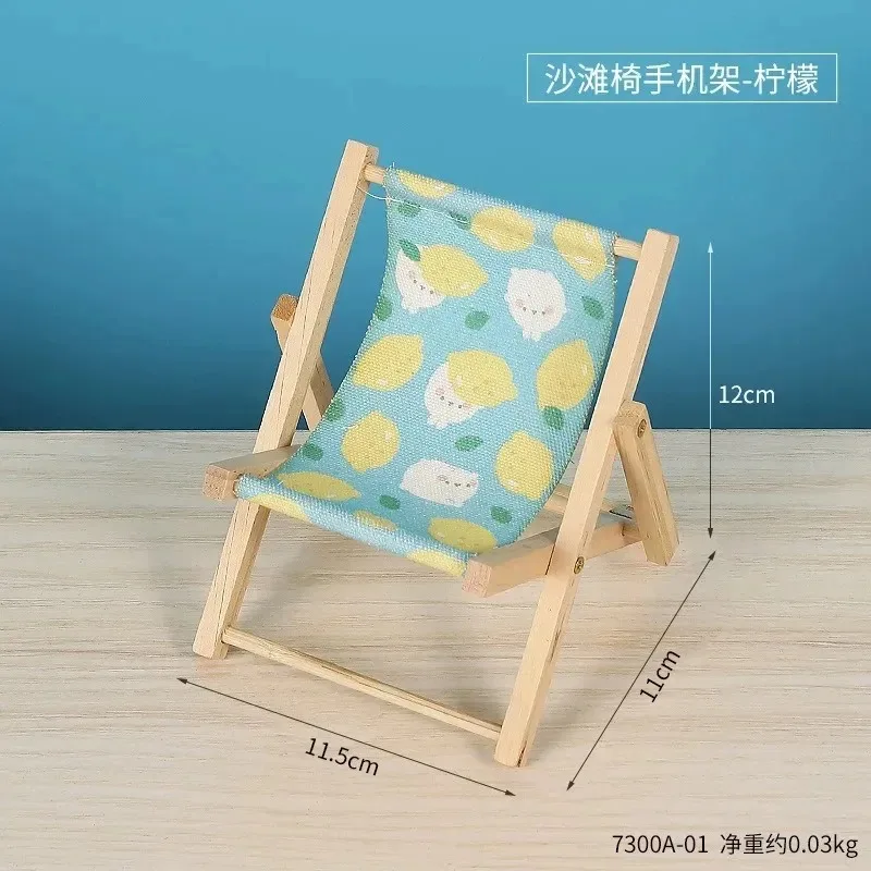 Wooden beach/camping reclining chair for 10cm Labubu dolls