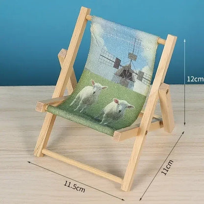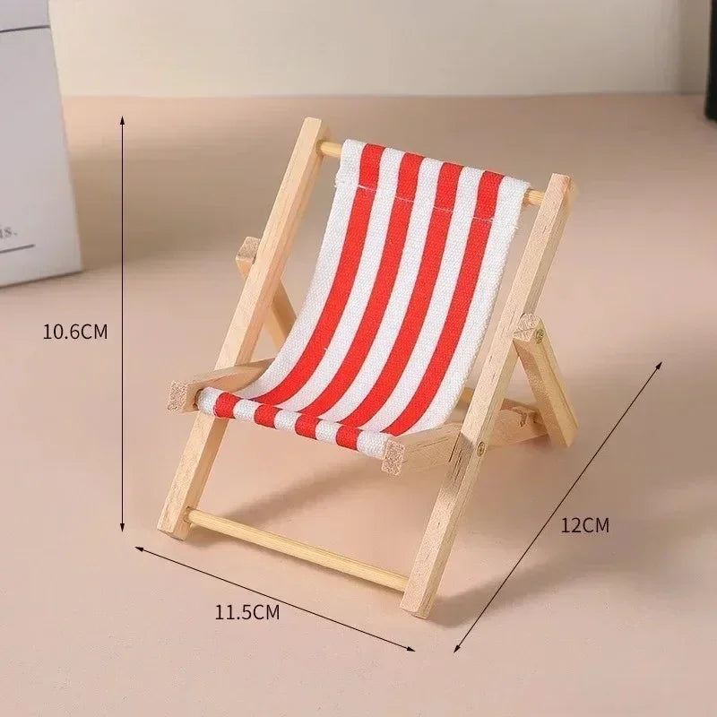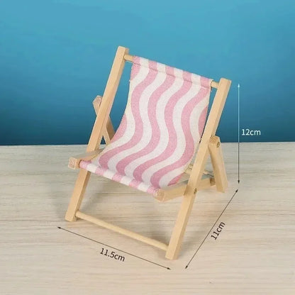 Bubu Central Labubu 10cm Beach Chair – Wooden Reclining Camping Chair Accessory for Labubu Dolls | Summer Vacation Mini Furniture (No Doll)